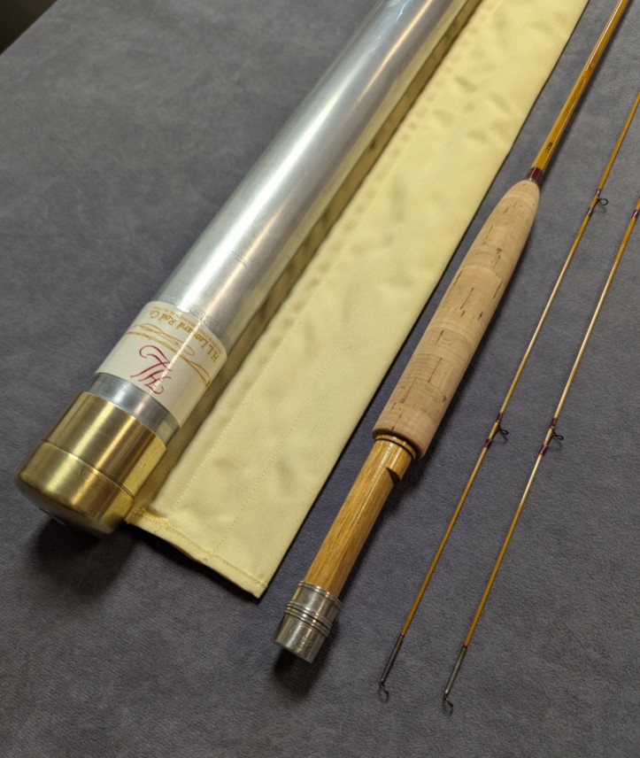 bright nickel silver slide band and butt cap and Butternut wooden reel seat. Rod comes packed in yellow cloth rod bag