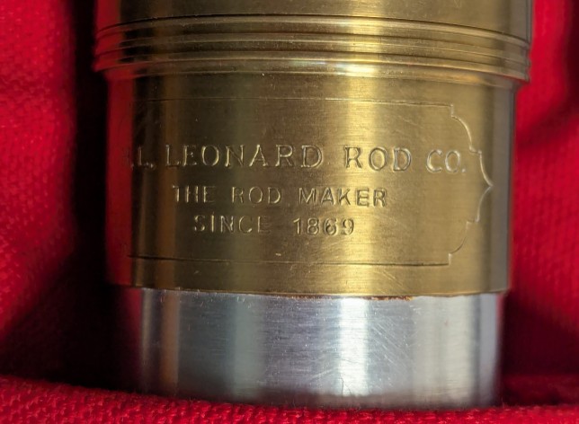 in tan cloth rod bag and stored in aluminum stamped