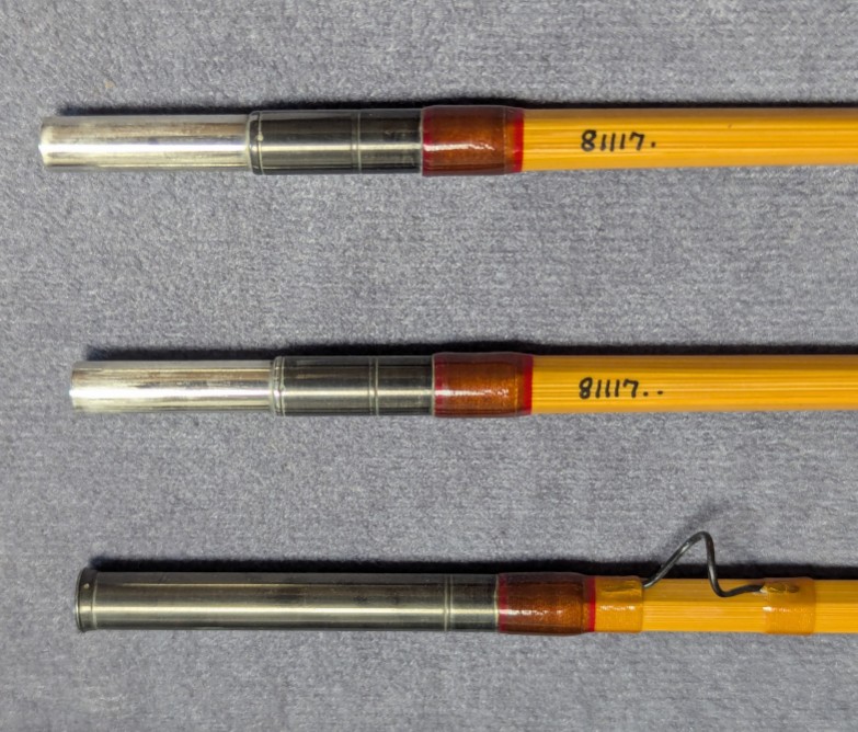 Blued nickel silver rod ferrules. Wrapped in clear golden silks.