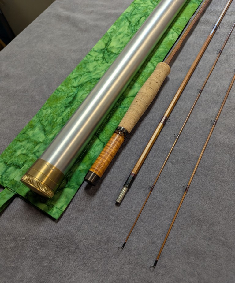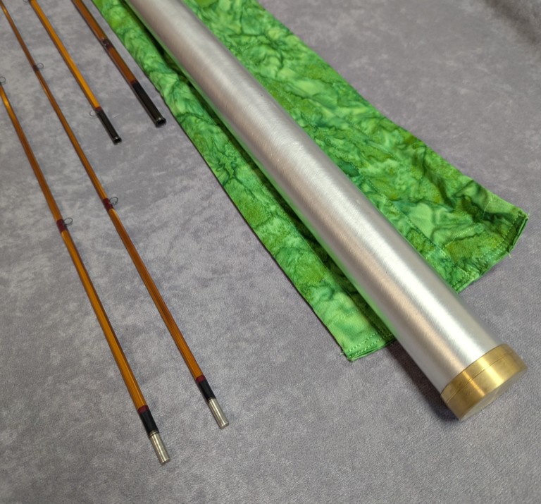 The rod features beautiful dark flamed cane with a graceful swelled butt. It is wrapped in
