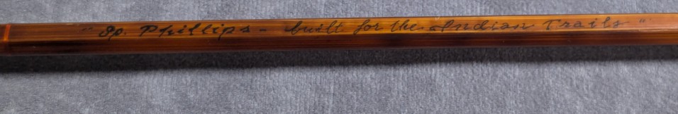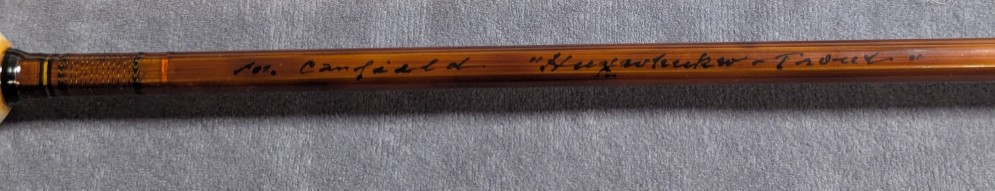 Very nice dark flamed cane. Blued Super Z rod ferrules. Wrapped in brown silks tipped in black.