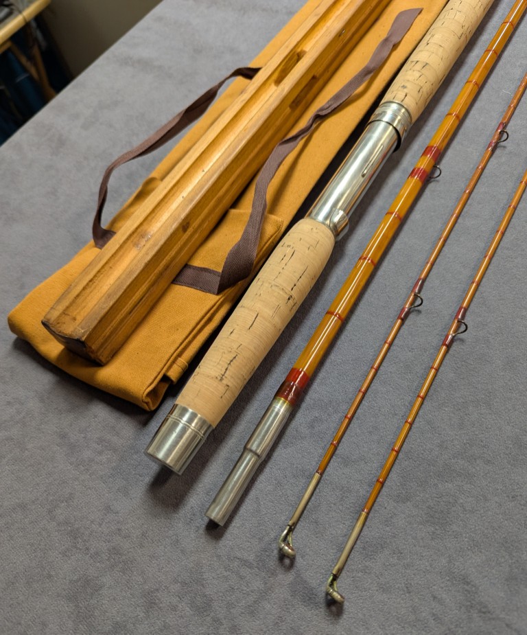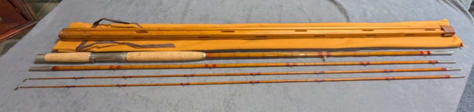 mid and tips are stored in original wooden carrier. Rod is in excellent refinished condition. $795.