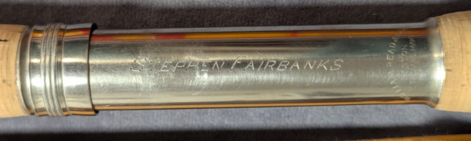 with full nickel silver slide band reel seat. Former owner's name, Stephen Fairbanks nicely