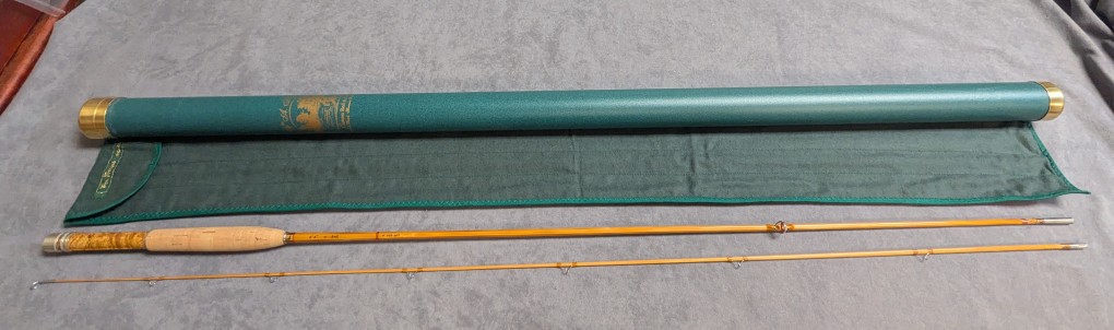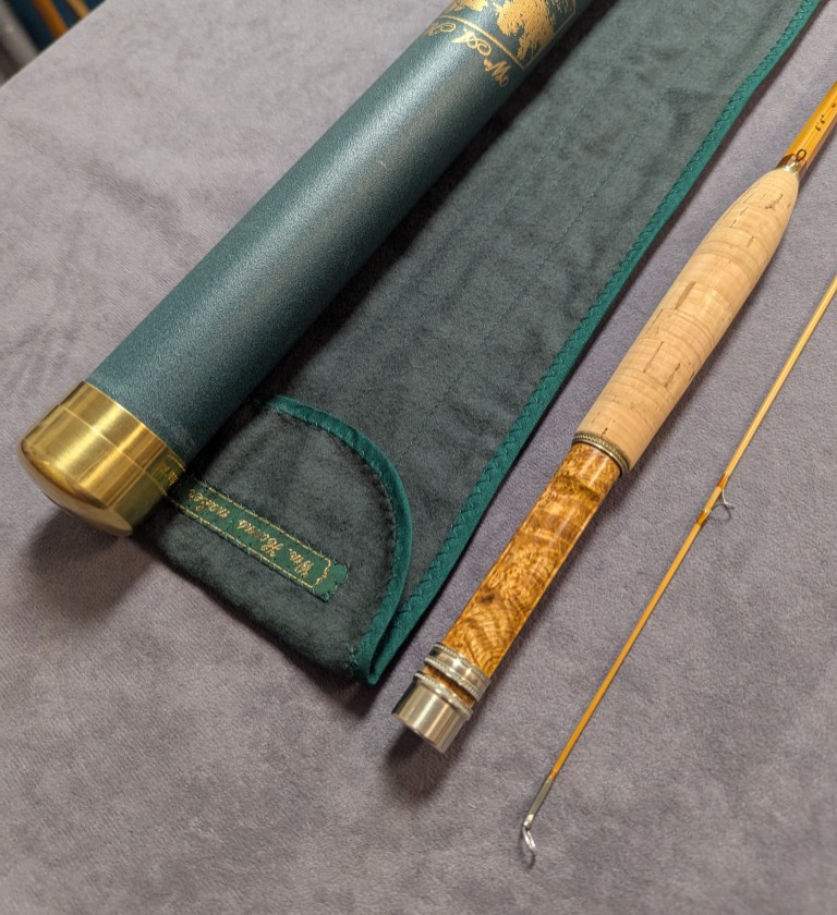 butt cap with Burled Maple wooden reel seat. Rod comes packed in green flannel labeled rod bag and