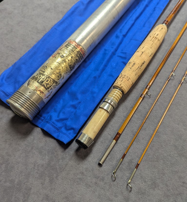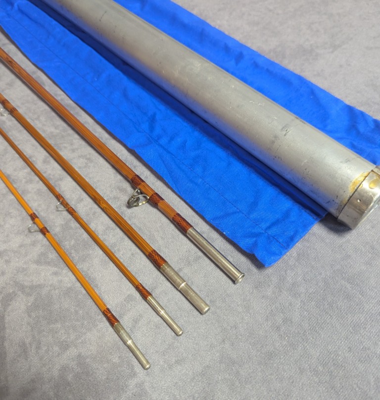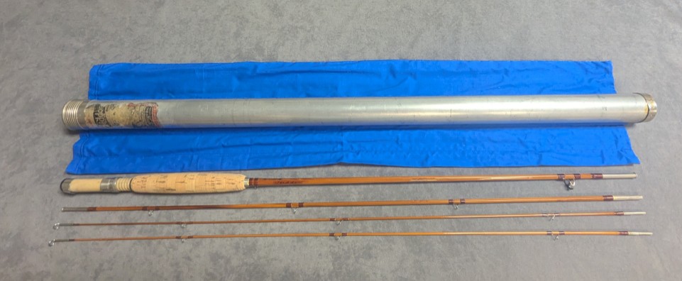 packed in blue cloth rod bag and stored in original aluminum labeled rod tube. Rod was refinished in 2001.