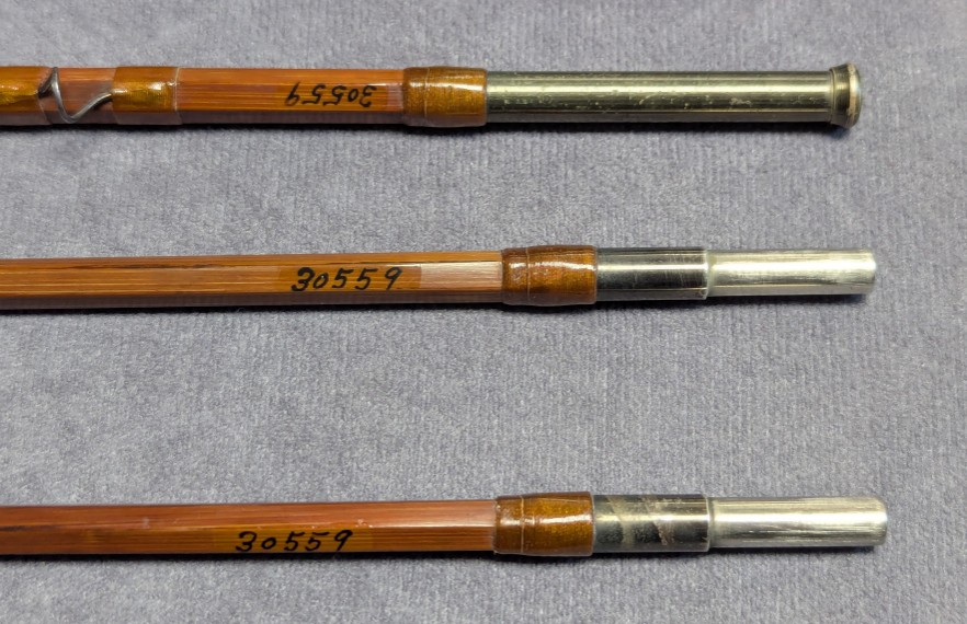 brown silks, carbide stripper guide. Cigar cork grip with down-