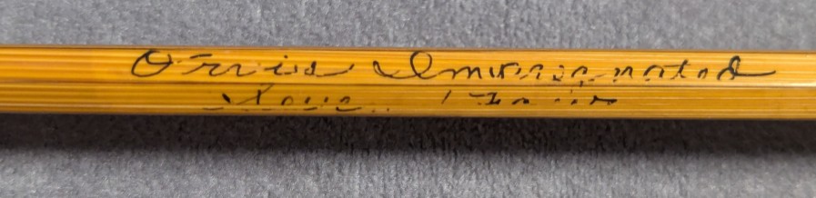 Medium fast dry fly action. 3 3/8 oz. Serial #88349. Built in 1993. Very nice impregnated bamboo.
