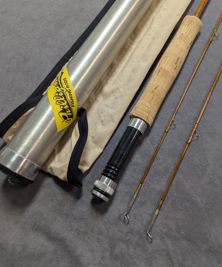 Fast dry fly action. Bright nickel silver rod ferrules. Wrapped in golden silks, tipped in black.