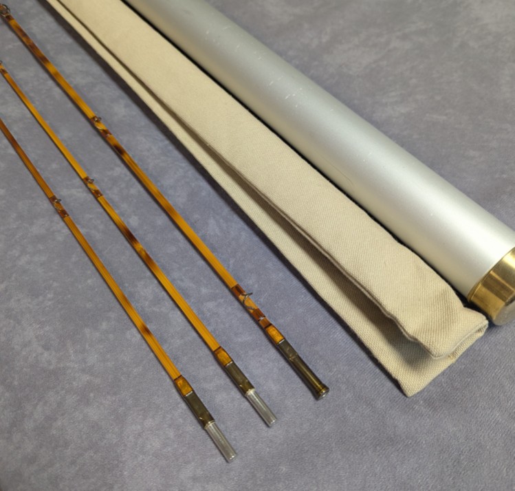 in khaki cloth rod bag and stored in aluminum labeled brass capped rod tube.