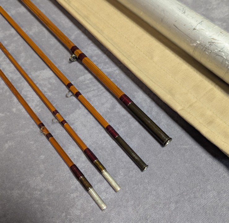 packed in original labeled khaki cloth rod bag and stored in original labeled factory rod tube.