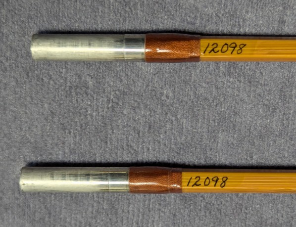 Bright nickel silver Swiss styled rod ferrules. Wrapped in beige silks,
