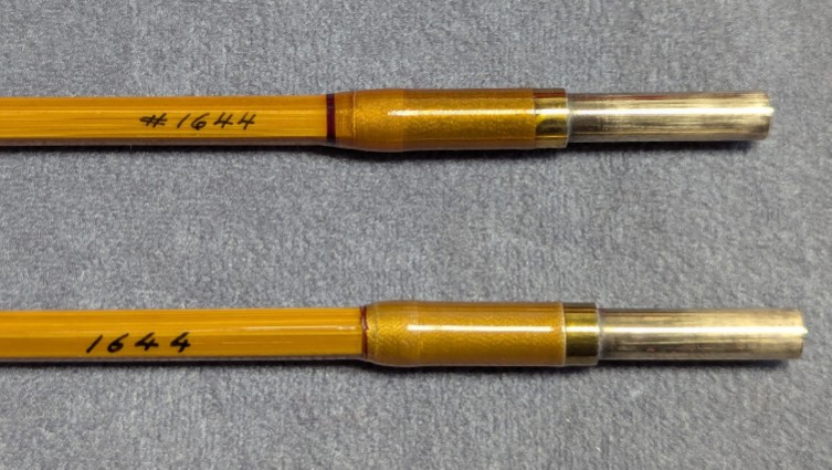 3 1/2 oz. Duronz ferrules. Wrapped in golden silks, carbide stripper guide. Full Wells cork grip with