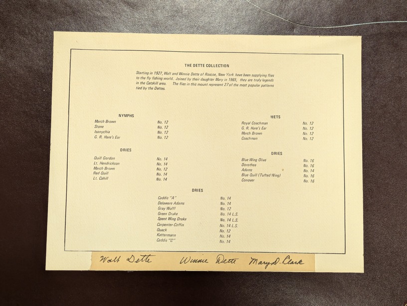with 27 flies tied by Walt, Winnie and Mary - Measures 21 1/4"w x 17 1/2" h x 2 1/2" deep.