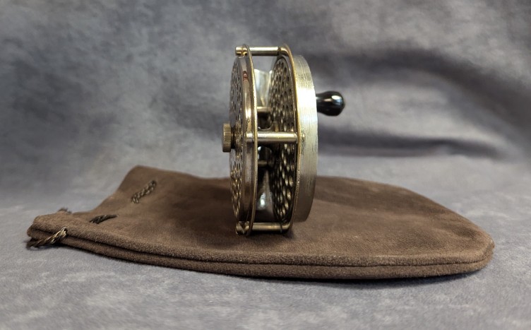 Good strong click and spring. Reel is in very good condition for it's age.Reel comes stored in brown leather drawstring reel bag.