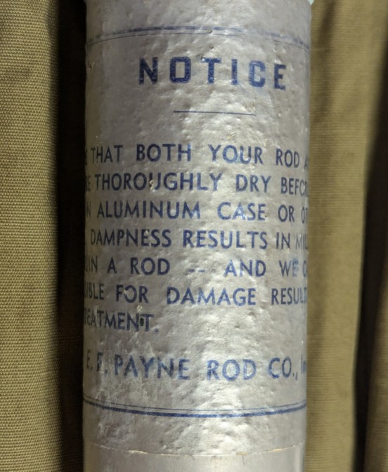 factory rod bag with hang tag and stored in original factory labeled, aluminum brass capped rod tube. All sections