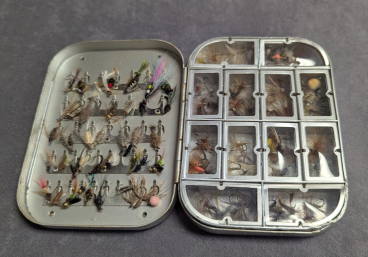 to hold wet flies and nymphs. Comes with 9 doz. dry flies, nymphs and wet flies.