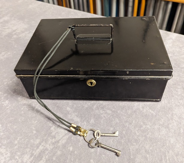 Black painted finish. Measures 7" x 11" x 3 3/4". Comes with locking keys.