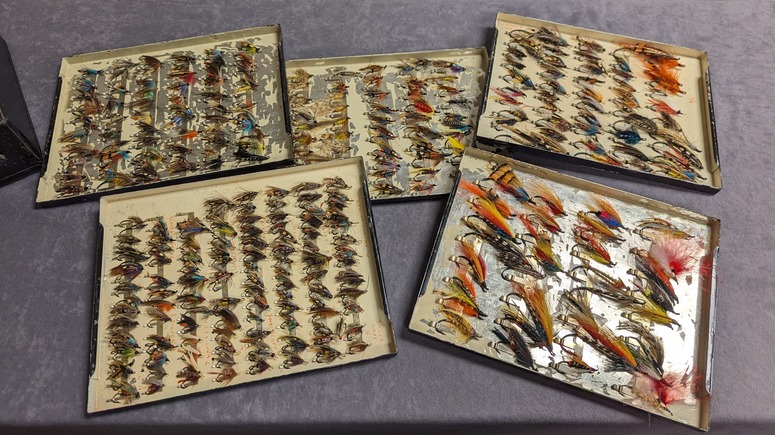 with hundreds of Salmon flies, mostly Full Dresses patterns,