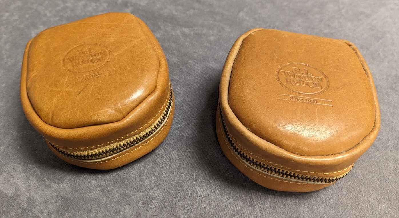 R. L. WINSTON BROWN LEATHER ZIPPERED REEL CASES, $150. each