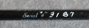 Fast action 1.9 oz. Serial #3187. Wrapped in black with gray tippings.