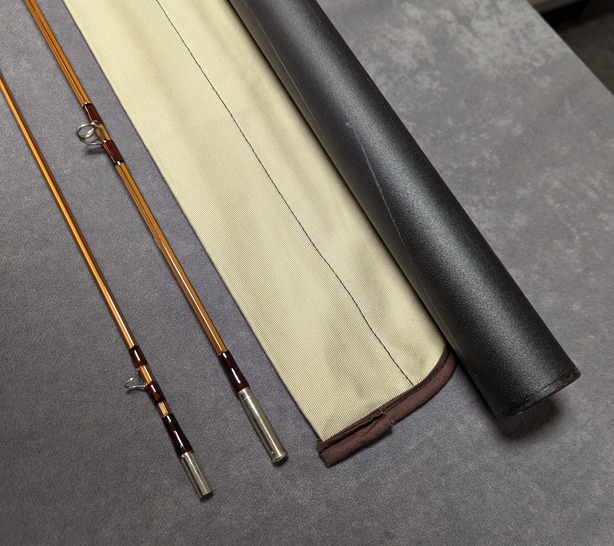 labeled khaki cloth rod bag and stored in black labeled aluminum rod tube.