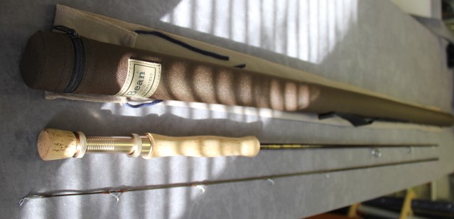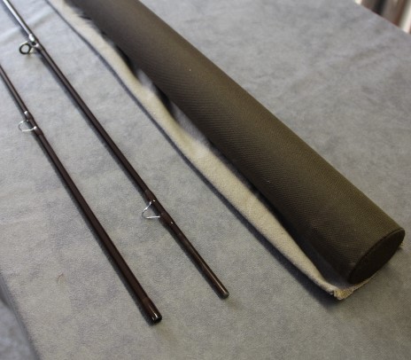 tan cloth rod bag and stored in brown labeled codura factory rod tube.