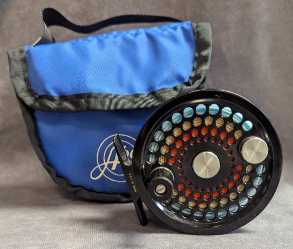 Takes 7-9 wt. lines. Serial #2437. Black anodized reel finish.