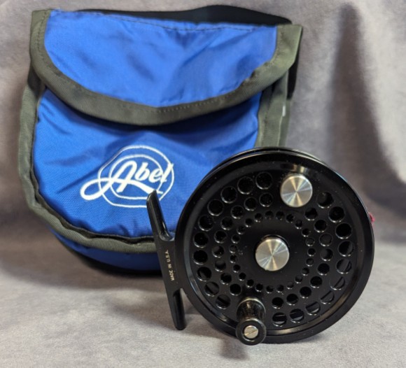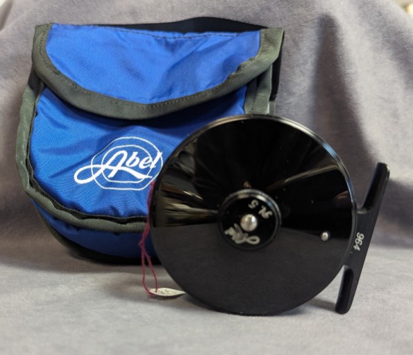 Black anodized reel finish. Serial #964. Wooden handle knob.