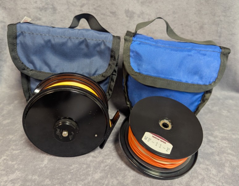 Takes 10 -12 wt. lines. Serial #624. Black anodized reel finish.