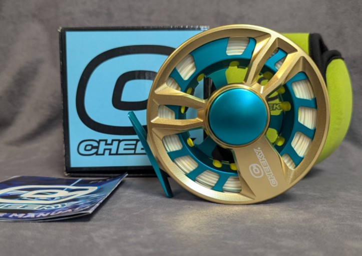 fly line and backing. Turquoise and gold anodized reel finish. Disc type drag