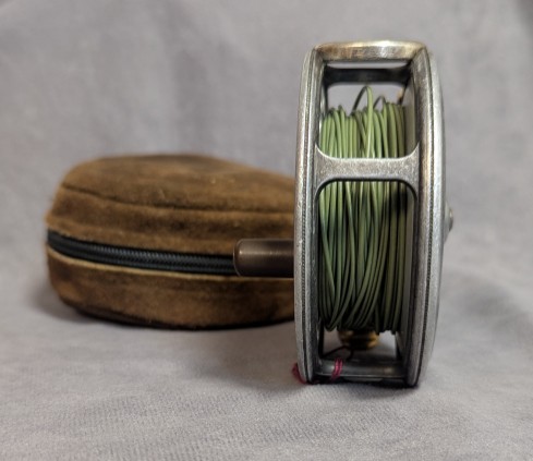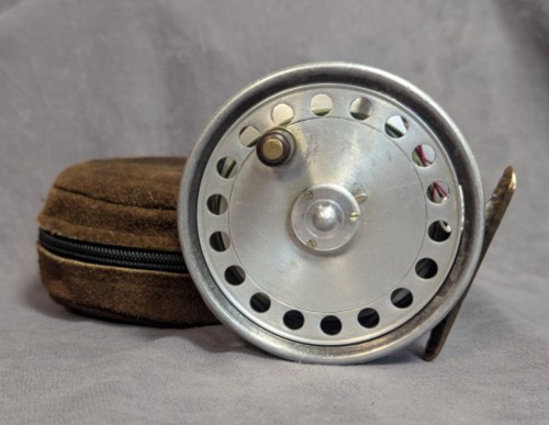 in brown suede zippered reel case and is in very good condition. $395.