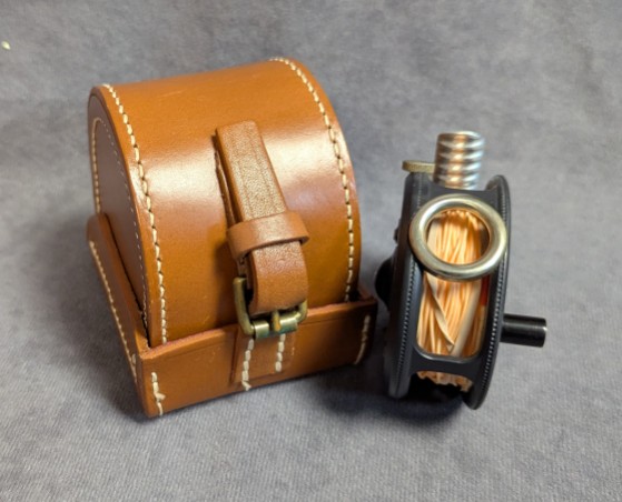 block leather reel case. Reel and line are in new unused condition. $425.