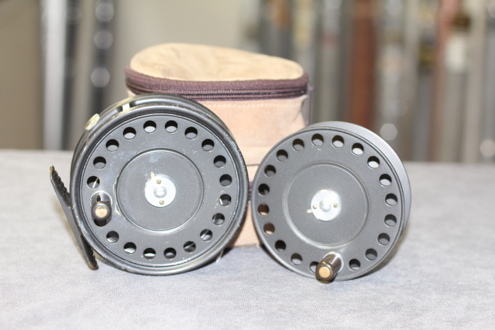 Takes 8-10 wt. lines. Quick release spool lever. Ribbed brass reel foot. Enameled reel finish. LHW.
