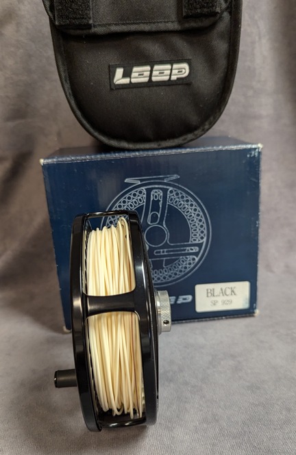 and backing. Reel comes stored in black factory neoprene reel pouch