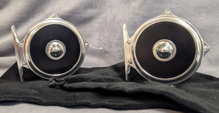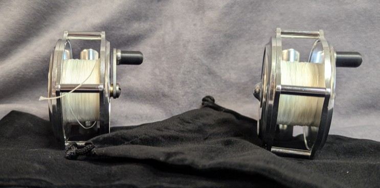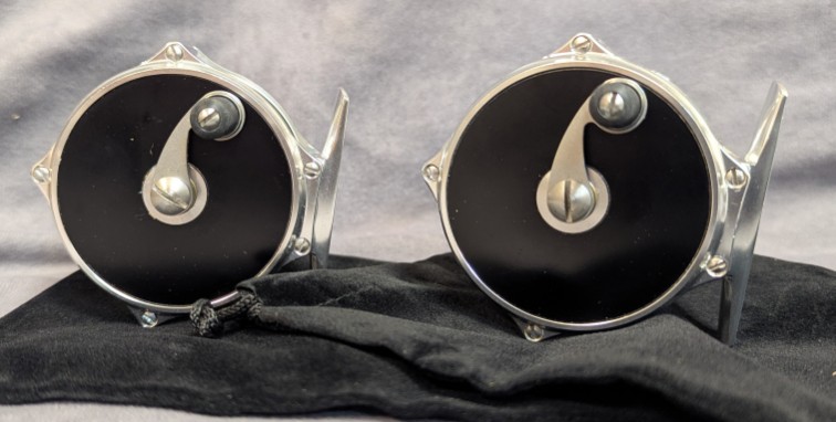 UNMARKED RAISED PILLARED SINGLE ACTION CLICK TROUT REELS