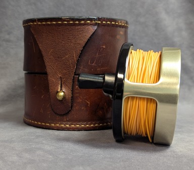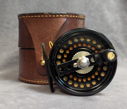 7/8" wide spool. Takes 4-5 wt. lines. Gold anodized and black reel finish.