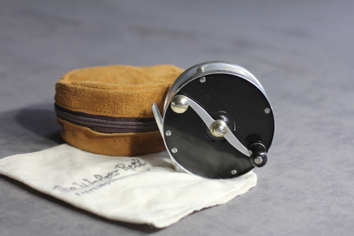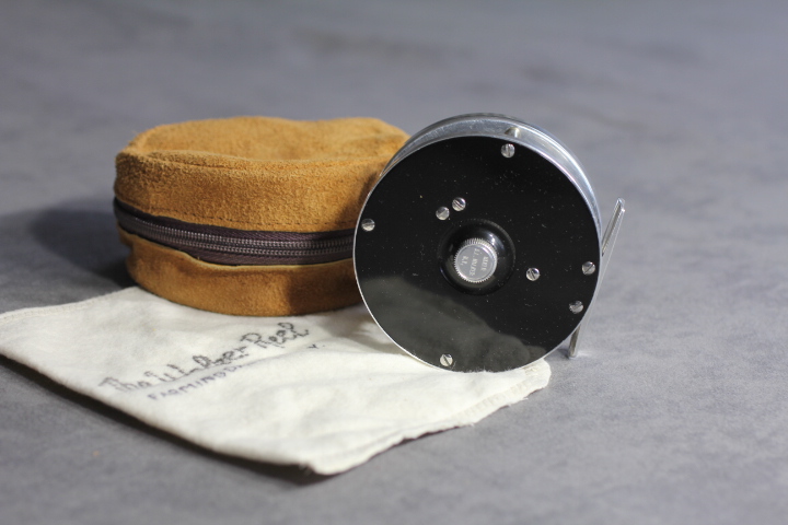 Black and silver reel finish with Delrin side plates. Click and pawl pre-set drag system. Comes stored in brown zippered reel case Reel is in excellent condition. $1895.