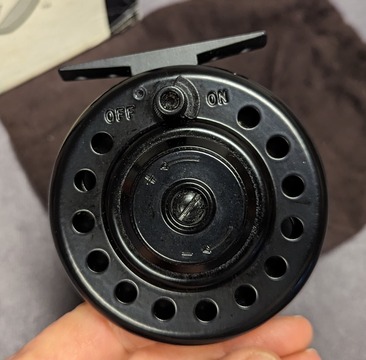 quick release spool lever. Rear On/off click button. Black painted reel finish.
