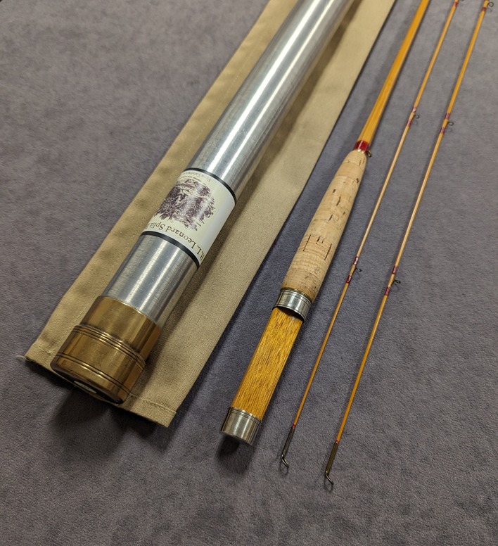 Wrapped in Leonard red silks, 4 1/2" cigar cork grip with bright