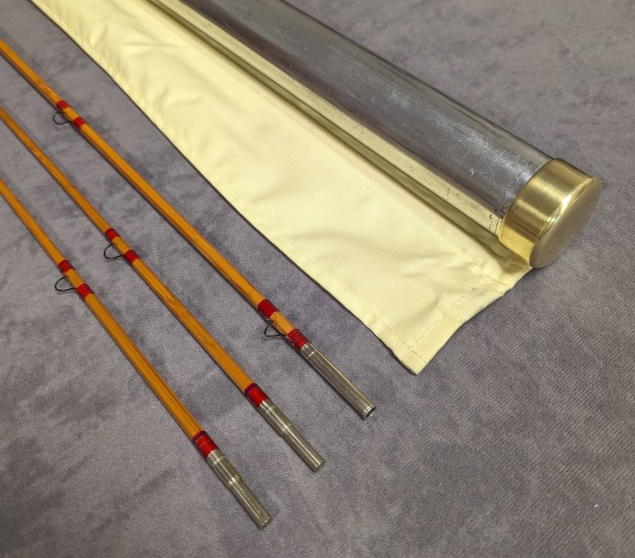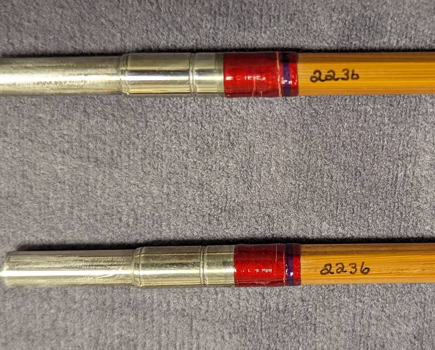 Bright nickel silver rod ferrules. Wrapped in red silks, cigar cork