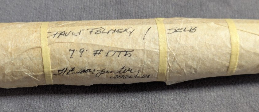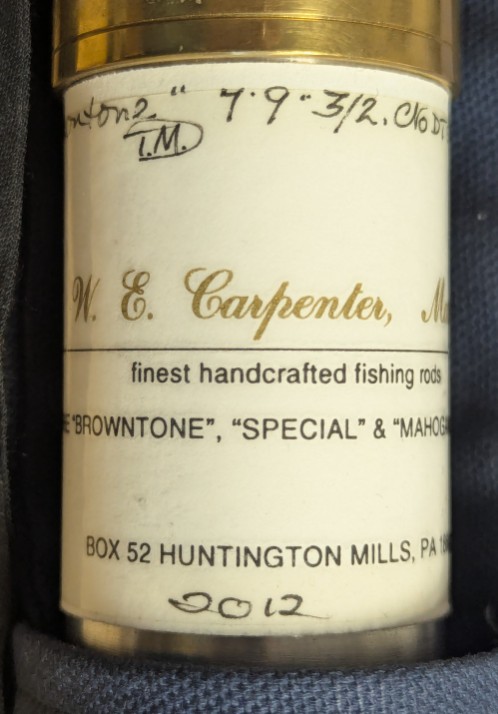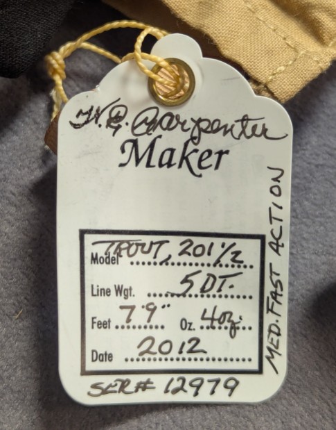 packed in khaki cloth rod bag with hang tag and stored in aluminum labeled brass capped rod tube with custom