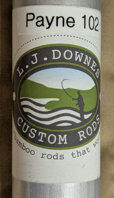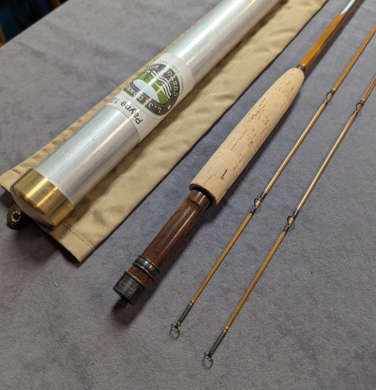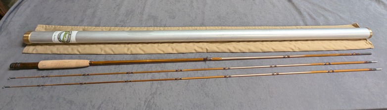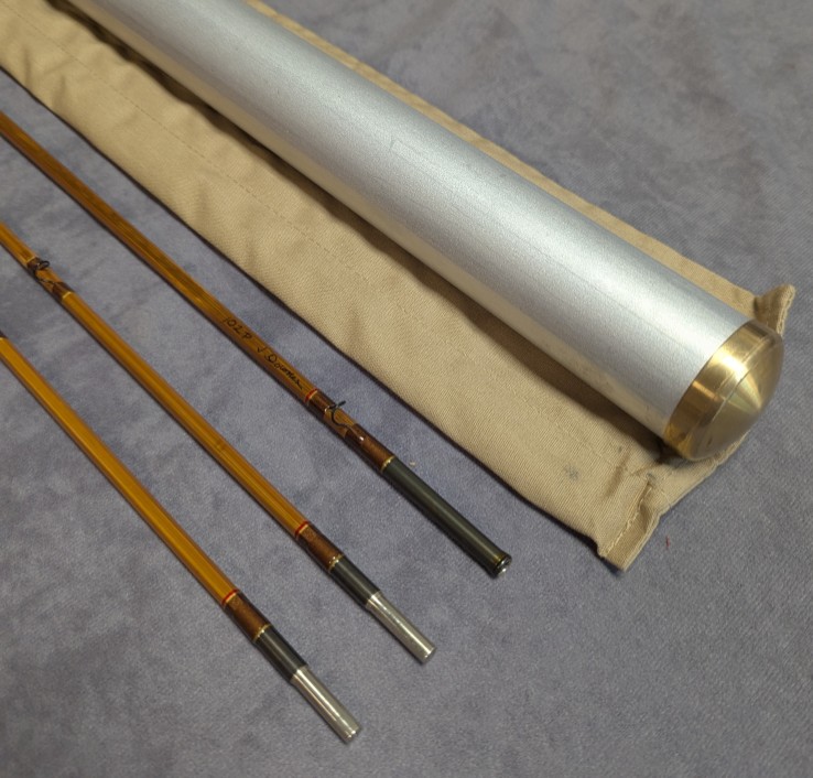 with Walnut wooden reel seat spacer. Rod comes packed in tan cloth rod bag and stored in aluminum labeled