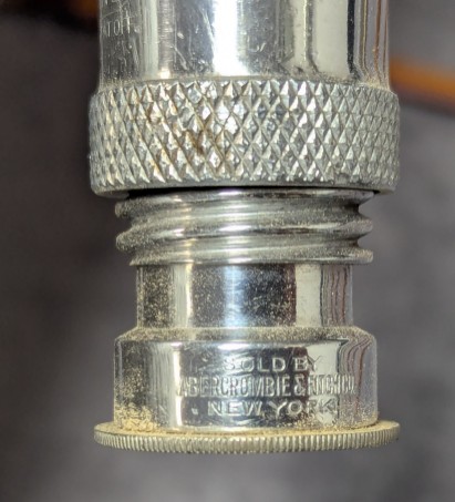 bright anodized aluminum reel seat with Walnut wooden reel seat spacer, Butt cap stamped, "Sold by A & F, NY".