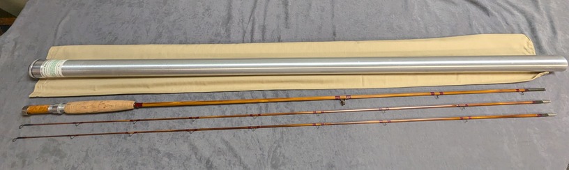 4.4 oz. Medium fast dry fly action. Serial #97-8-1. Blued nickel silver rod ferrules.