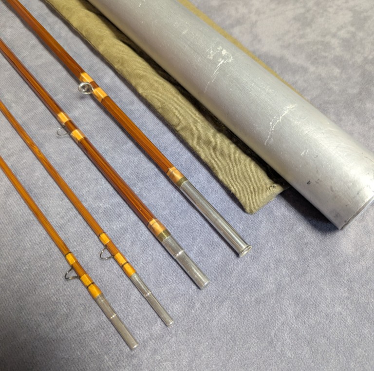 packed in olive green cloth rod bag and stored in aluminum factory rod tube.
