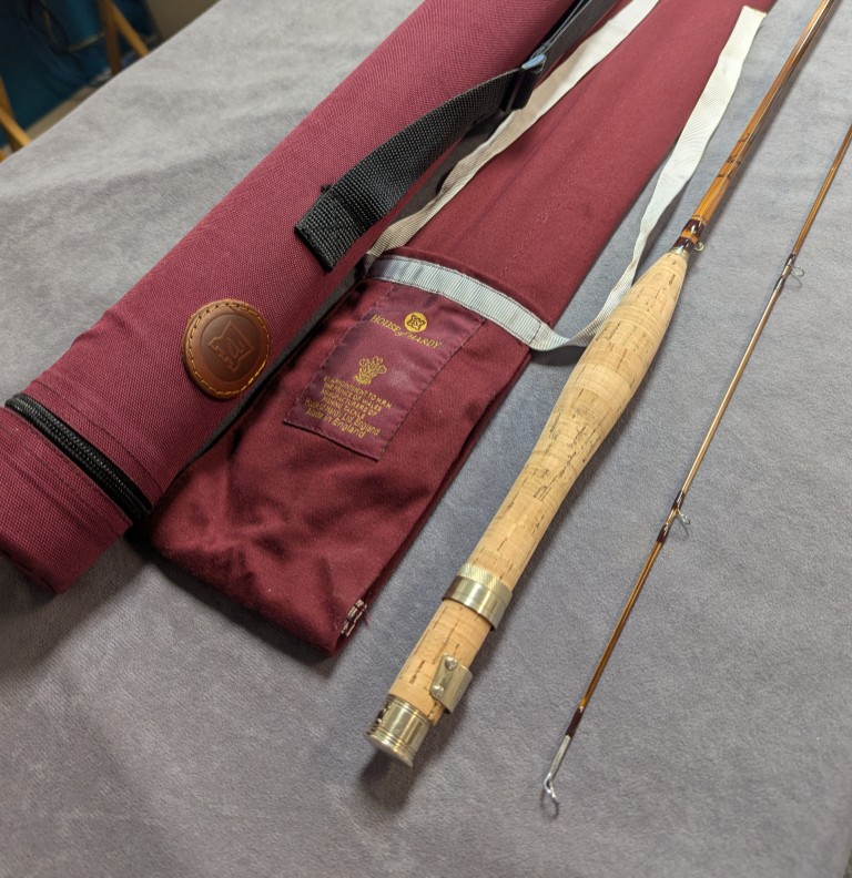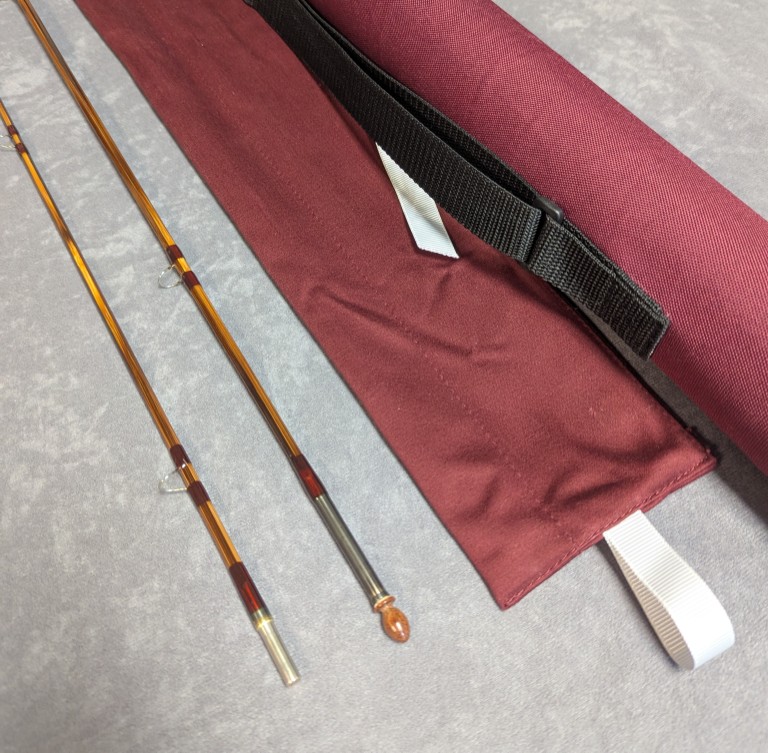 Hardy labeled factory rod bag and stored in burgundy factory codura labeled rod tube.