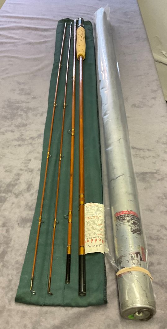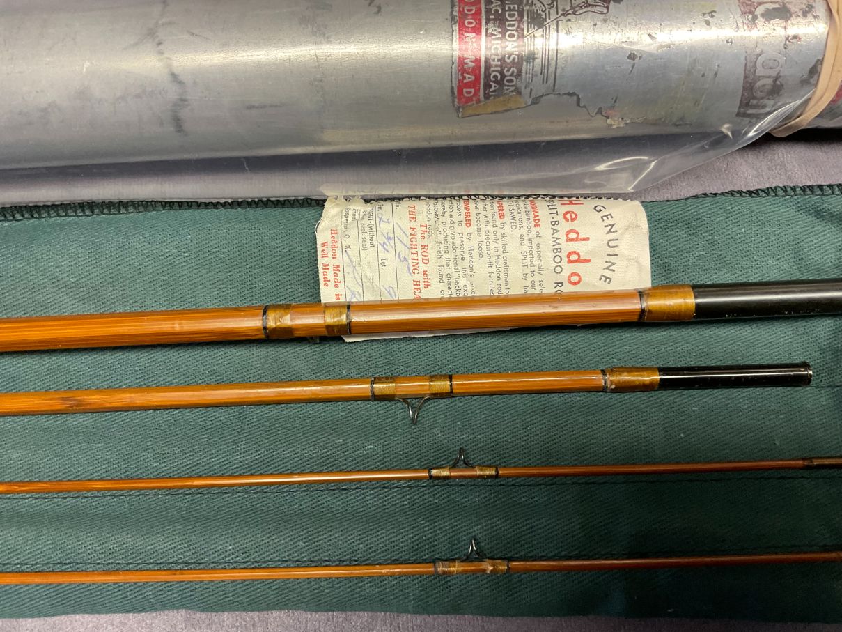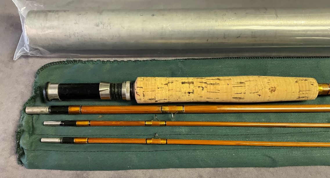 and black plastic reel seat. Rod comes packed in green factory cloth rod bag and stored in aluminum labeled factory rod tube.