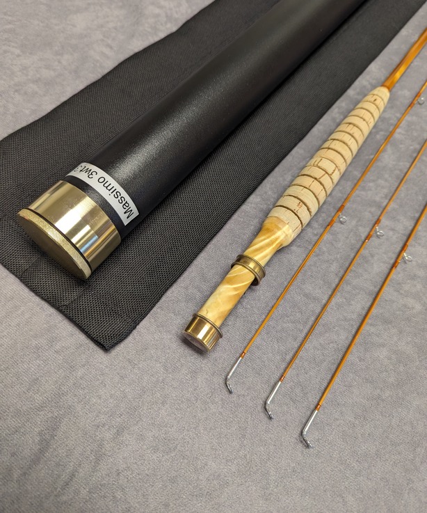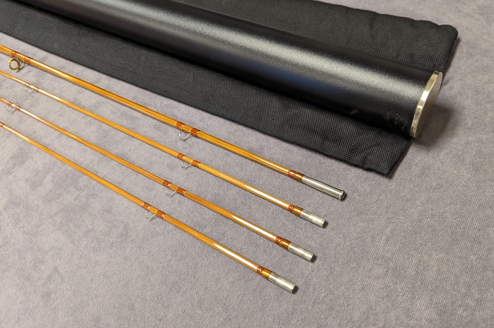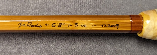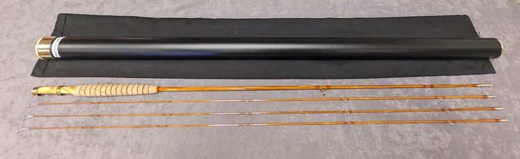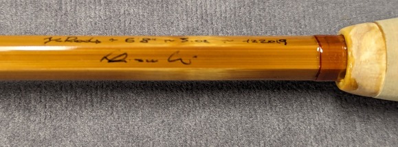 with Tiger mottled wooden reel seat. Dark flamed tempered cane.