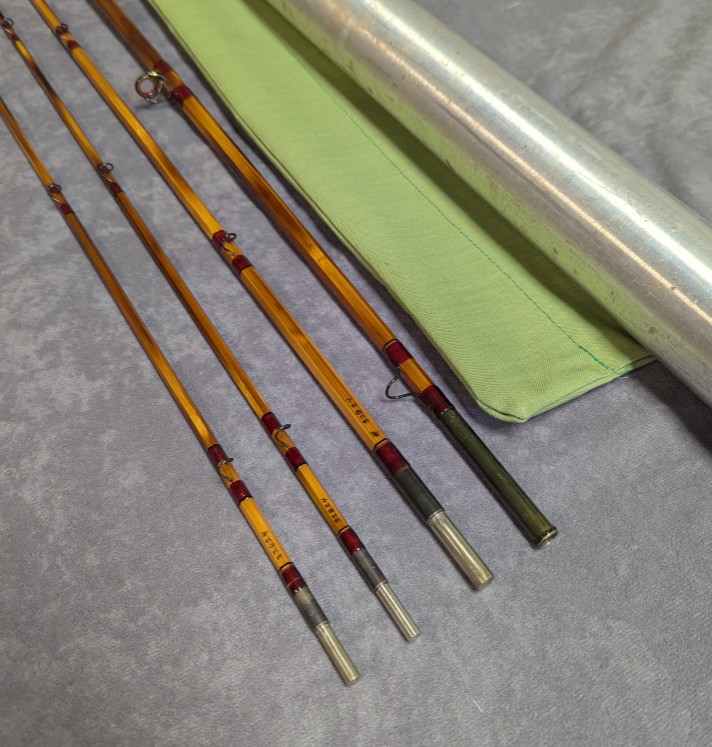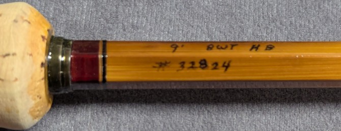 Built in 2024. Serial #32824.Dark flamed tempered bamboo. Blued nickel silver rod ferrules.