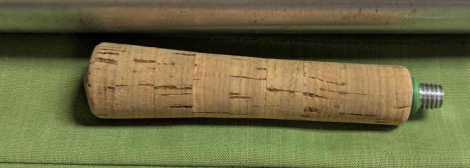 up-locking bright anodized aluminum reel seat with Walnut wooden reel seat spacer.